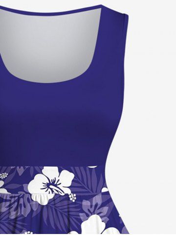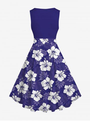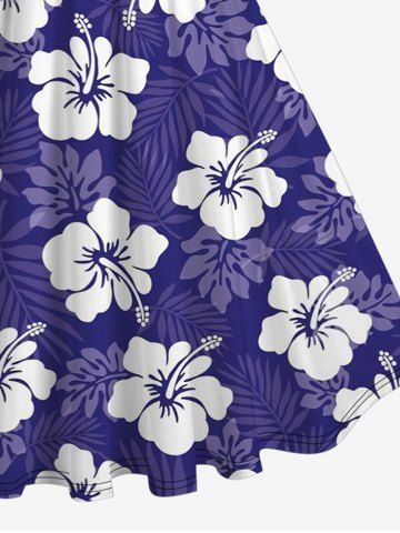 Plus Size Flower Palm Leaf Print Hawaii 1950s Vintage Dress - Blue - 4x