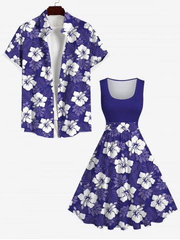 Graphic Dresses > Plus Size Flower Palm Leaf Print Hawaii 1950s Vintage Dress