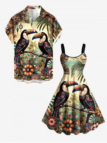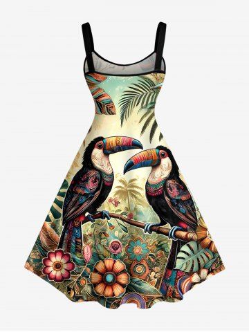 Graphic Dresses > Plus Size Flower Parrot Ethnic Graphic Print Hawaii A Line Dress