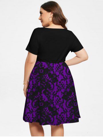 Plus Size Flower Print Cinched Ruched Dress - Concord - 6x