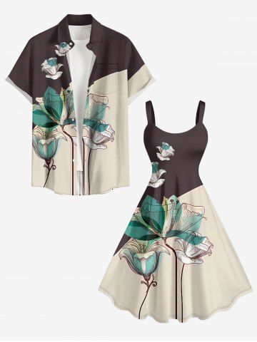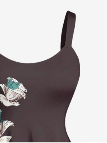 Plus Size Flower Print Hawaii A Line Dress - Deep Brown - Xxs