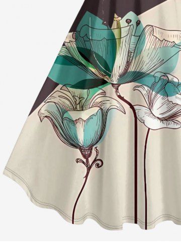 Plus Size Flower Print Hawaii A Line Dress - Deep Brown - 6x