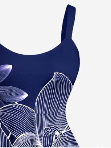 Plus Size Flower Print Hawaii A Line Tank Dress - Blue - M