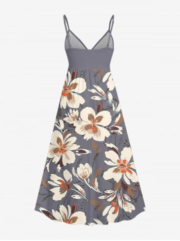 Plus Size Flower Print Hawaii Surplice A Line Cami Dress - Light Gray - Xxs