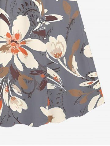 Plus Size Flower Print Hawaii Surplice A Line Cami Dress - Light Gray - M