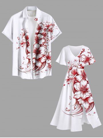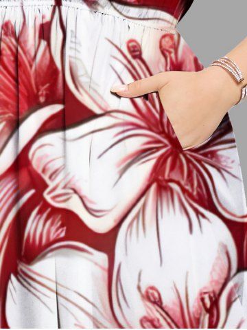 Plus Size Flower Sea Waves Print Hawaii Split Pocket A Line Midi Dress - White - 4x