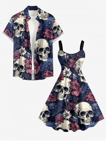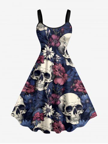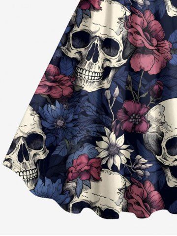 Graphic Dresses > Plus Size Flower Skull Print Hawaii A Line Dress