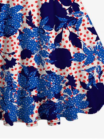 Plus Size Flower Spotted Print 1950s Vintage Hawaii A Line Dress - Midnight Blue - 5x