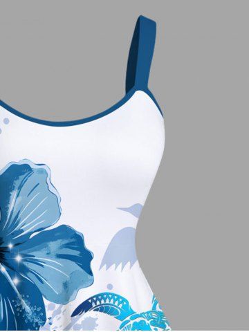 Plus Size Flower Turtle Bird Painting Splatter Print Hawaii Sea Creatures Ombre A Line Tank Dress - White - 6x