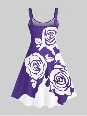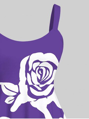 Plus Size Flower Two Tone Print Hawaii Backless A Line Tank Dress - Purple - S
