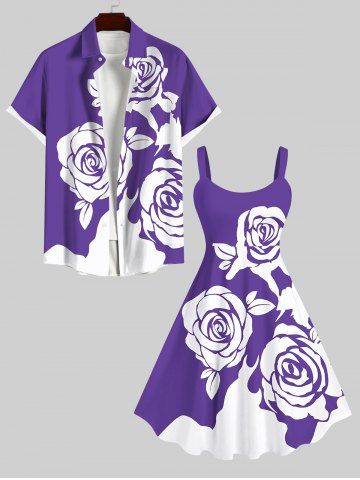 Plus Size Flower Two Tone Print Hawaii Backless A Line Tank Dress - Purple - 1x