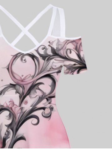 Plus Size Flower Vine Branch Print Hawaii Ombre Crisscross A Line Maxi Dress - White - 5x