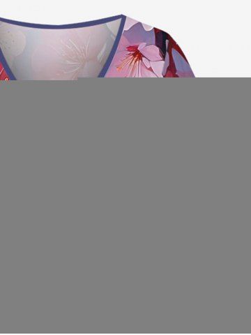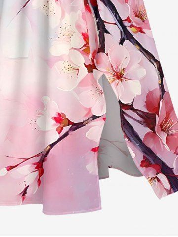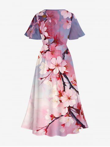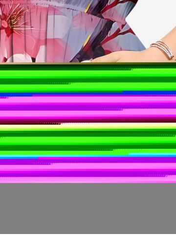 Plus Size Flowers Brach Ombre Print Split Hawaii Midi Dress - Pink - Xs