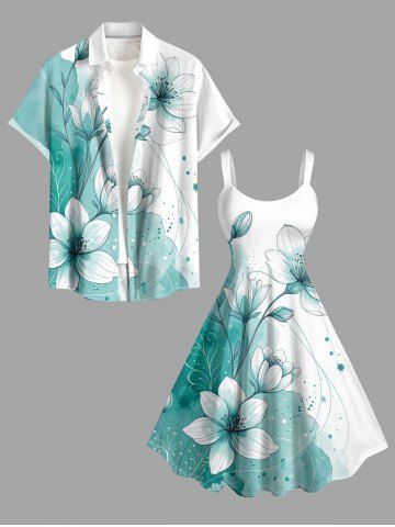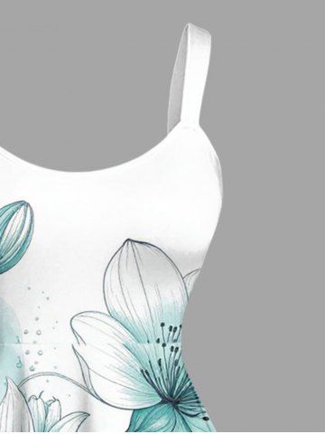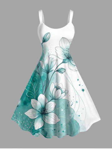 Plus Size Flowers Colorblock Watercolor Print Hawaii Tank Dress - Dark Turquoise - 4x