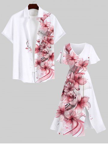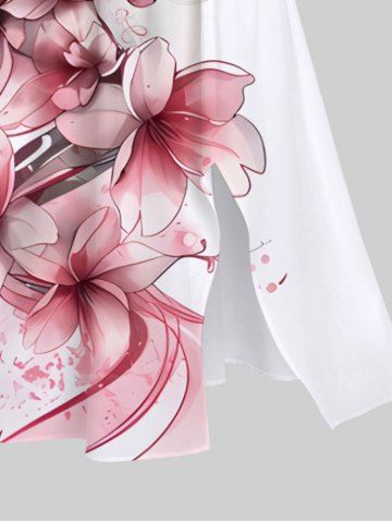 Plus Size Flowers Curve Print Split Hawaii Midi Dress - White - Xs