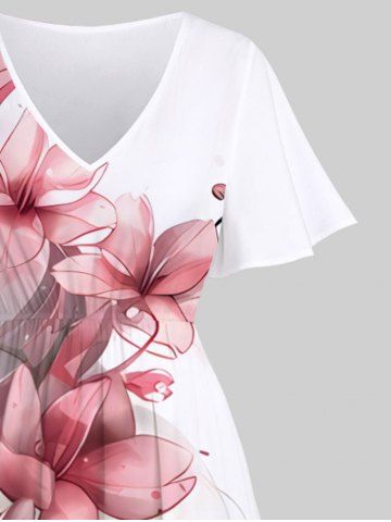 Plus Size Flowers Curve Print Split Hawaii Midi Dress - White - 1x