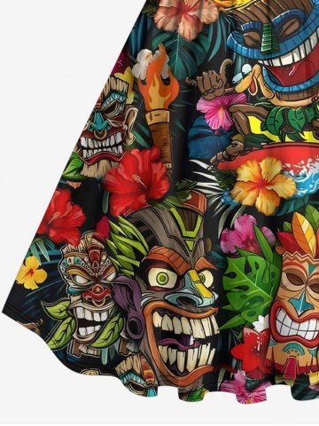 Graphic Dresses > Plus Size Flowers Fire Flame Mask Print Hawaii 1950s Vintage Dress