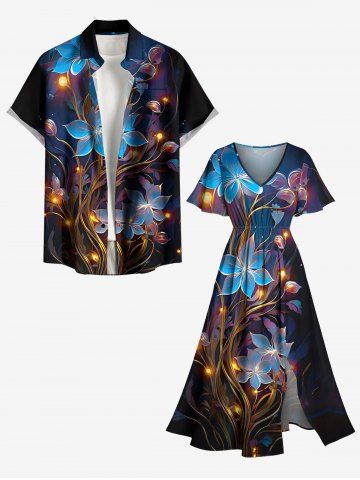 Graphic Dresses > Plus Size Flowers Galaxy Glitter 3D Print Split Hawaii Midi Dress