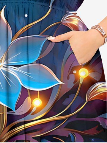 Plus Size Flowers Galaxy Glitter 3D Print Split Hawaii Midi Dress - Sky Blue - S