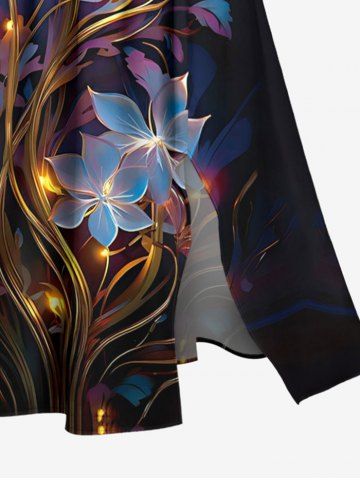 Graphic Dresses > Plus Size Flowers Galaxy Glitter 3D Print Split Hawaii Midi Dress