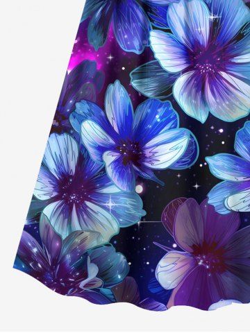Graphic Dresses > Plus Size Flowers Galaxy Star Print Surplice Hawaii Cami Dress