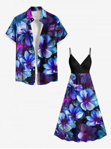 Graphic Dresses > Plus Size Flowers Galaxy Star Print Surplice Hawaii Cami Dress