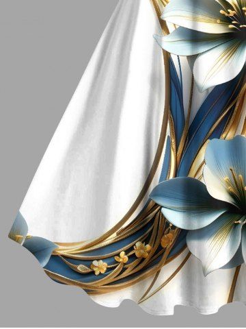 Plus Size Flowers Geometric Pattern Metallic Print Hawaii Tank Dress - White - 1x