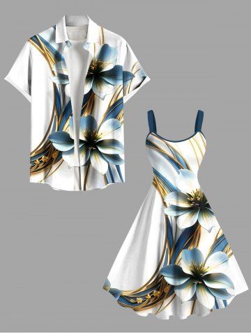 Plus Size Flowers Geometric Pattern Metallic Print Hawaii Tank Dress - White - 4x