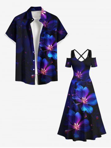 Graphic Dresses > Plus Size Flowers Glitter 3D Print Cold Shoulder Crisscross Hawaii Maxi Dress