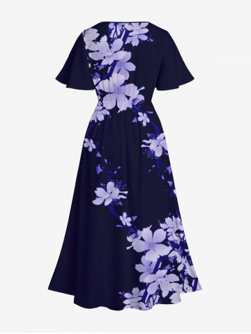 Graphic Dresses > Plus Size Flowers Glitter 3D Print Pocket Hawaii Split Midi Dress
