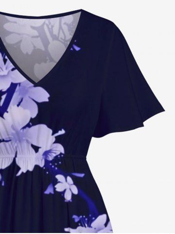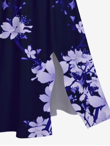 Plus Size Flowers Glitter 3D Print Pocket Hawaii Split Midi Dress - Black - 6x