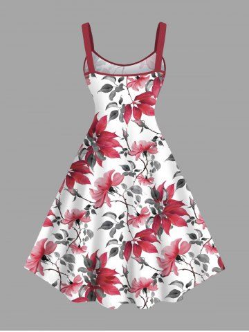 Plus Size Flowers Leaf Chinese Style Print Hawaii Tank Dress - White - S