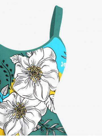 Plus Size Flowers Leaf Colorblock Print Hawaii Tank Dress - Green - M