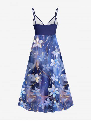 Graphic Dresses > Plus Size Flowers Leaf Galaxy Star Print Surplice Hawaii Cami Dress