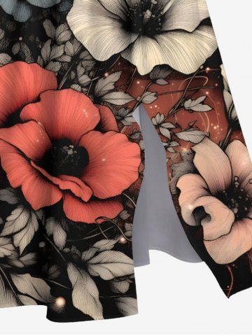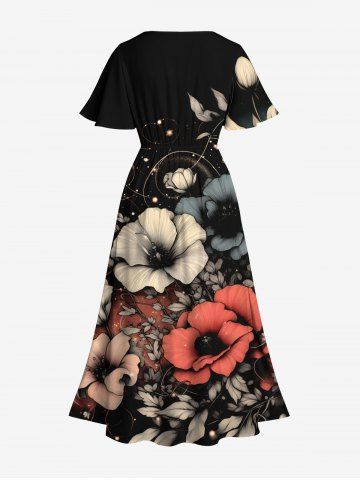 Plus Size Flowers Leaf Glitter 3D Print Split Hawaii Midi Dress - Black - 1x