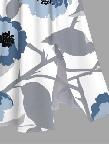 Plus Size Flowers Leaf Ink Painting Print Split Hawaii Midi Dress - White - L