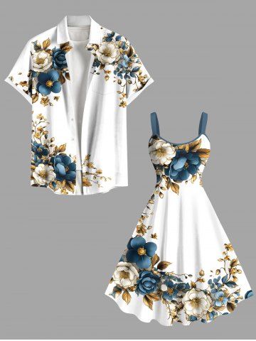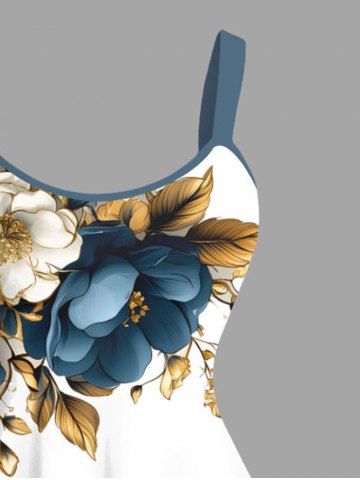 Plus Size Flowers Leaf Metallic Print Hawaii Tank Dress - White - 4x