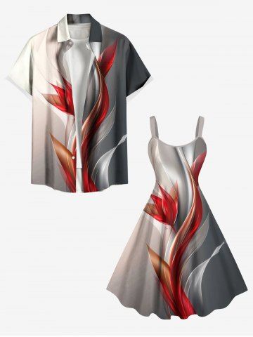 Plus Size Flowers Leaf Ombre Curve Print Hawaii Tank Dress - Gray - Xxs