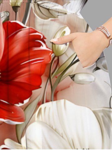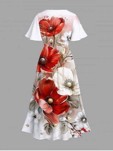 Plus Size Flowers Leaf Ombre Paint Splatter Print Split Hawaii Mid Dress - Red - 2x