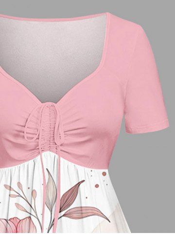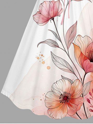 Plus Size Flowers Leaf Ombre Print Cinched Hawaii Dress - Pink - Xxs