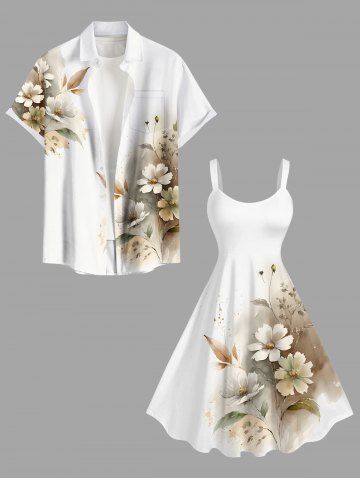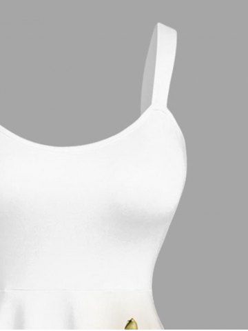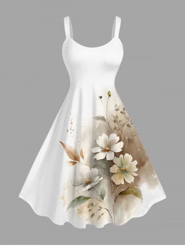 Plus Size Flowers Leaf Ombre Print Hawaii Tank Dress - White - Xs