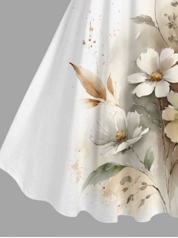Plus Size Flowers Leaf Ombre Print Hawaii Tank Dress - White - 1x