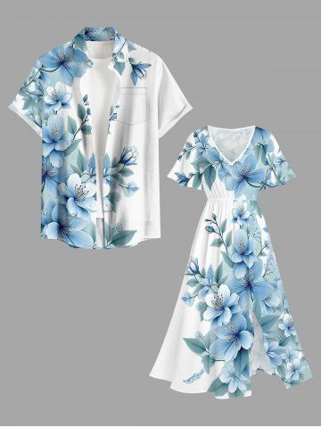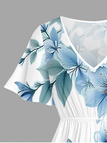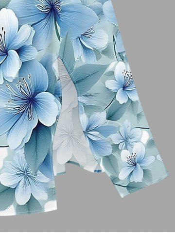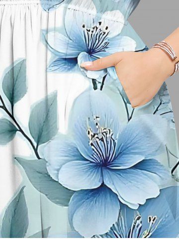 Plus Size Flowers Leaf Ombre Print Split Hawaii Midi Dress - Light Blue - M