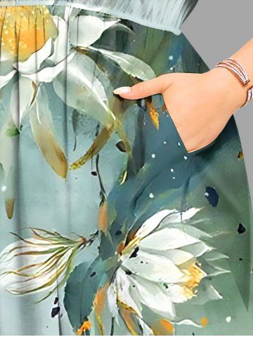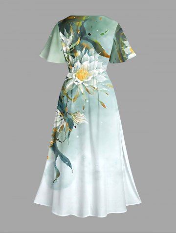 Plus Size Flowers Leaf Ombre Print Split Hawaii Midi Dress - Green - Xxs
