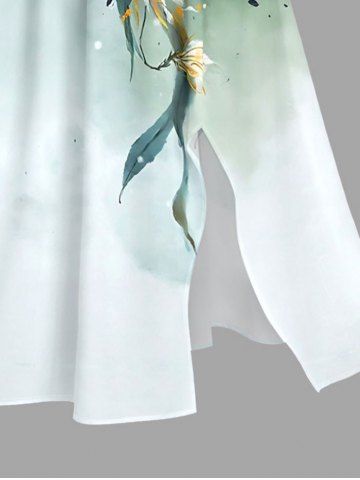 Plus Size Flowers Leaf Ombre Print Split Hawaii Midi Dress - Green - 2x