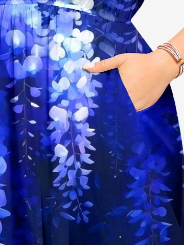 Plus Size Flowers Leaf Ombre Print Split Hawaii Midi Dress - Blue - L
