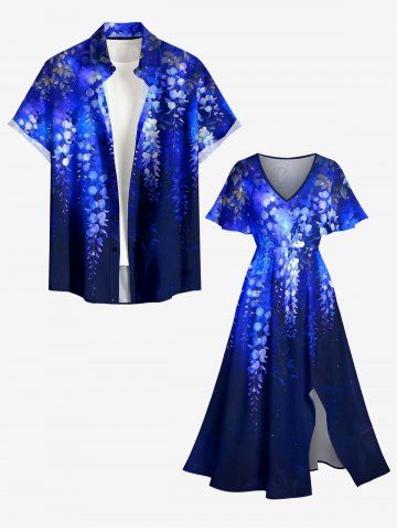 Plus Size Flowers Leaf Ombre Print Split Hawaii Midi Dress - Blue - 5x