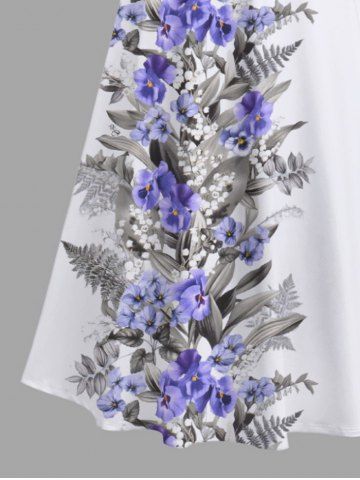Plus Size Flowers Leaf Print Cold Shoulder Crisscross Hawaii Maxi Dress - White - 4x