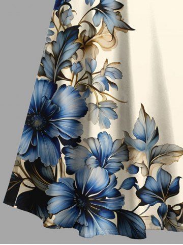 Graphic Dresses > Plus Size Flowers Leaf Print Cold Shoulder Crisscross Hawaii Maxi Dress