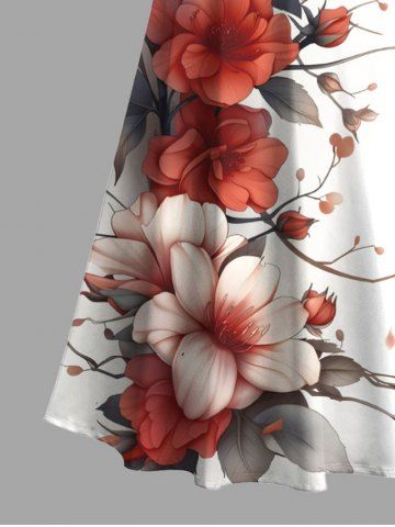 Plus Size Flowers Leaf Print Cold Shoulder Crisscross Hawaii Maxi Dress - White - Xs